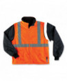 Class 3 4-in-1 jacket for Fall, Winter and Spring. The only jacket you'll need all year. Weatherproof 300D oxford polyester outer shell with breathable PU coating that resists water and wind, for dry comfort all day. Inner jacket with 100 g 3M Thinsulate lining. Inner jacket zips out and sleeves zip off to create Class 2 thermal vest. Features 2 ANSI-compliant reflective stripes for nighttime visibility. Other features include inset hood with drawstring and stoppers, two external front pockets with snap flaps, cell phone chest poacket and dual mic tabs for clipping radios.