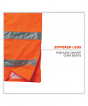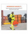 Hi-vis rain pants offer waterproof, breathable protection against wet conditions. A comfortable elastic waistband means these waterproof work pants can be worn alone or over a base layer. The pant legs have zip openings to easily fit over boots. These work rain pants are built for demanding conditions with durable 300D poly oxford material and a breathable polyurethane (PU) coating that lets moisture escape while sealing out the rain to keep workers cool and comfortable. The ANSI compliant high visibility polyester fabric and 3M Scotchlite 2 reflective tape keeps workers highly visible at night or in low light conditions. These hi-vis waterproof pants meet ANSI Supplemental Class E Standards. Made for the industrial workplace and workers in low-light environments, flagging crews, utility