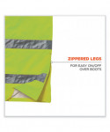 Hi-vis rain pants offer waterproof, breathable protection against wet conditions. A comfortable elastic waistband means these waterproof work pants can be worn alone or over a base layer. The pant legs have zip openings to easily fit over boots. These work rain pants are built for demanding conditions with durable 300D poly oxford material and a breathable polyurethane (PU) coating that lets moisture escape while sealing out the rain to keep workers cool and comfortable. The ANSI compliant high visibility polyester fabric and 3M Scotchlite 2 reflective tape keeps workers highly visible at night or in low light conditions. These hi-vis waterproof pants meet ANSI Supplemental Class E Standards. Made for the industrial workplace and workers in low-light environments, flagging crews, utility