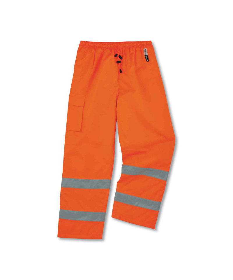 Class E thermal pants have a weatherproof polyester outer shell with a breathable 3M thinsulate lining for warmth and waterproof comfort. Features a 2" ANSI-compliant 3M Scotchlite Reflective and one right leg cargo pocket. Elastic waist with a drawstring guarantee a perfect fit and zippered leg openings offer an easy on/off.