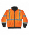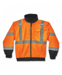 GloWear 8379 Type R Class 3 Fleece-Lined High Visibility Bomber Jacket has a zip-out fleece liner and can be worn three different ways for the ultimate in adaptability for winter workwear. This fleece-lined hi-vis jacket is a Type R Class 3 winter work jacket with 2" ANSI-compliant reflective material for compliance, visibility and warmth at an economical price. This high visibility winter jacket can be worn three different ways: 1) as a jacket with the fleece liner zipped in, 2) fleece liner on its own, or 3) wear the shell on its own for a lightweight, water-resistant outer layer. The weatherproof 300D oxford outer shell with a PU coating resists water and wind to keep you dry and warm. Cuffs feature hook-and-loop straps to seal out the cold. Featuring two external front pockets. There are two mic tabs located on the upper chest of the jacket.
