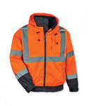 GloWear 8379 Type R Class 3 Fleece-Lined High Visibility Bomber Jacket has a zip-out fleece liner and can be worn three different ways for the ultimate in adaptability for winter workwear. This fleece-lined hi-vis jacket is a Type R Class 3 winter work jacket with 2" ANSI-compliant reflective material for compliance, visibility and warmth at an economical price. This high visibility winter jacket can be worn three different ways: 1) as a jacket with the fleece liner zipped in, 2) fleece liner on its own, or 3) wear the shell on its own for a lightweight, water-resistant outer layer. The weatherproof 300D oxford outer shell with a PU coating resists water and wind to keep you dry and warm. Cuffs feature hook-and-loop straps to seal out the cold. Featuring two external front pockets. There are two mic tabs located on the upper chest of the jacket.