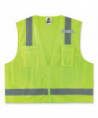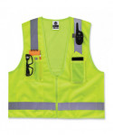 The GloWear 8249Z-S Hi-Vis Surveyors Vest is an ANSI 107 Type R, Class 2 vest with a 3.6 oz polyester solid front and breathable 3.3 oz polyester mesh back. This hi-vis vest features 2" reflective tape for enhanced low-light visibility. With two interior and two exterior pockets, including a cell phone chest pocket, this vest provides ample storage for pens, notebooks, tablets and more. A single mic tab allows convenient radio access, and a zipper closure makes for easy on and off. This vest is available in single sizes to allow workers to order their exact size for a more tailored, performance-style fit compared to dual-size vests (tip: for best fit, select one size down from your normal T-shirt size). This reflective safety vest is ideal for anyone requiring Type R, Class 2 apparel.