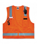 The GloWear 8249Z-S Hi-Vis Surveyors Vest is an ANSI 107 Type R, Class 2 vest with a 3.6 oz polyester solid front and breathable 3.3 oz polyester mesh back. This hi-vis vest features 2" reflective tape for enhanced low-light visibility. With two interior and two exterior pockets, including a cell phone chest pocket, this vest provides ample storage for pens, notebooks, tablets and more. A single mic tab allows convenient radio access, and a zipper closure makes for easy on and off. This vest is available in single sizes to allow workers to order their exact size for a more tailored, performance-style fit compared to dual-size vests (tip: for best fit, select one size down from your normal T-shirt size). This reflective safety vest is ideal for anyone requiring Type R, Class 2 apparel.