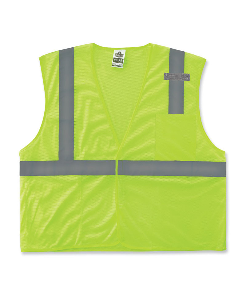 The GloWear 8210HL-S Mesh Hi-Vis Safety Vest is an ANSI 107 Type R, Class 2 vest made of 3.3 oz polyester mesh. This hi-vis vest features 2" reflective tape for enhanced low-light visibility, plus a lower interior pocket, exterior pocket and single mic tab. A hook and loop closure makes for easy on and off. This vest is available in single sizes to allow workers to order their exact size for a more tailored, performance-style fit compared to dual-size vests (tip: for best single-size fit, select one size down from your normal T-shirt size). This reflective safety vest is ideal for anyone requiring Type R, Class 2 apparel, including road construction, baggage handling and municipalities.
