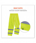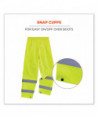 The GloWear 8916 Lightweight hi-vis rain pants offer protection against wet conditions while ensuring safety. A comfortable elastic waistband means these waterproof work pants can be worn alone or over a base layer, while the pant legs have snap cuffs to easily fit over boots and tightened to keep the wind out. These work rain pants are built for demanding conditions with rugged yet lightweight waterproof materials (150D polyester oxford material with a PU coating) and fully taped seams. The ANSI/ISEA 107 compliant high visibility polyester fabric and 2 reflective tape keeps workers highly visible at night or in low light conditions. These hi-vis waterproof pants meet ANSI 107 Supplemental Class E Standards. Made for the industrial workplace and workers in low-light environments, flagging crews, utility crews, road construction, railway workers and any others working in the rain.