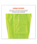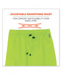 Hi-vis rain pants offer waterproof, breathable protection against wet conditions. The black panels on the bottom hide dirt and wear. A comfortable elastic waistband means these waterproof work pants can be worn alone or over a base layer. The pant legs have zip openings to easily fit over boots. These work rain pants are built for demanding conditions with durable 300D poly oxford material and a breathable polyurethane (PU) coating. The breathable coating lets moisture escape while sealing out the rain, to keep you dry and comfortable. The ANSI compliant high visibility polyester fabric and 3M Scotchlite 2 reflective tape keeps workers highly visible at night or in low light conditions. These hi-vis waterproof pants meet ANSI Supplemental Class E Standards. Made for the industrial workpla