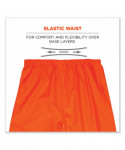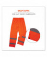 Lightweight hi-vis rain pants offer protection against wet conditions while ensuring safety. A comfortable elastic waistband means these waterproof work pants can be worn alone or over a base layer, while the pant legs have snap cuffs to easily fit over boots and tightened to keep the wind out. These work rain pants are built for demanding conditions with rugged yet lightweight waterproof materials (150D polyester oxford material with a PU coating) and fully taped seams. The ANSI/ISEA 107 compliant high visibility polyester fabric and 2 reflective tape keeps workers highly visible at night or in low light conditions. These hi-vis waterproof pants meet ANSI 107 Supplemental Class E Standards. Made for the industrial workplace and workers in low-light environments, flagging crews, utility c