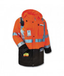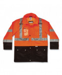 Class 3 outer shell jacket made of breathable poly keeps the rain out while letting perspiration escape. Black panels hide dirt in high wear areas. Fits over 8287 inner jacket to create a thermal 4-in-1 jacket. 2 ANSI-compliant 3M Scotchlite Reflective for visibility. Inset hood with drawstring and stoppers. A total of four pockets and a clear ID holder to keep personal items secure. Dual mic tabs for clipping radios.
