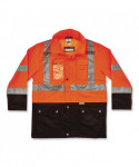 Class 3 outer shell jacket made of breathable poly keeps the rain out while letting perspiration escape. Black panels hide dirt in high wear areas. Fits over 8287 inner jacket to create a thermal 4-in-1 jacket. 2 ANSI-compliant 3M Scotchlite Reflective for visibility. Inset hood with drawstring and stoppers. A total of four pockets and a clear ID holder to keep personal items secure. Dual mic tabs for clipping radios.