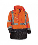Class 3 outer shell jacket made of breathable poly keeps the rain out while letting perspiration escape. Black panels hide dirt in high wear areas. Fits over 8287 inner jacket to create a thermal 4-in-1 jacket. 2 ANSI-compliant 3M Scotchlite Reflective for visibility. Inset hood with drawstring and stoppers. A total of four pockets and a clear ID holder to keep personal items secure. Dual mic tabs for clipping radios.