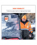 A Type R Class 3, 4-in-1 hi-vis jacket that can be worn multiple ways for ultimate adaptability in changing weather. Zip out the liner to wear it alone as a lightweight fleece jacket, zip off liner sleeves for wear as a vest, wear the shell on its own as a lightweight weatherproof layer or leave the liner zipped in to wear as a warm winter work jacket. Ultra-warm 280 g fleece traps heat for warmth in extreme cold, while a weatherproof 300D performance polyester shell with PU coating resists water and wind without compromising comfort or breathability. Built for long-lasting durability, this hi-vis jacket features a ripstop shell and dirt-hiding black panels. Compliant to ANSI/ISEA 107, Type R Class 3 with 2" reflective tape for enhanced low-light visibility.