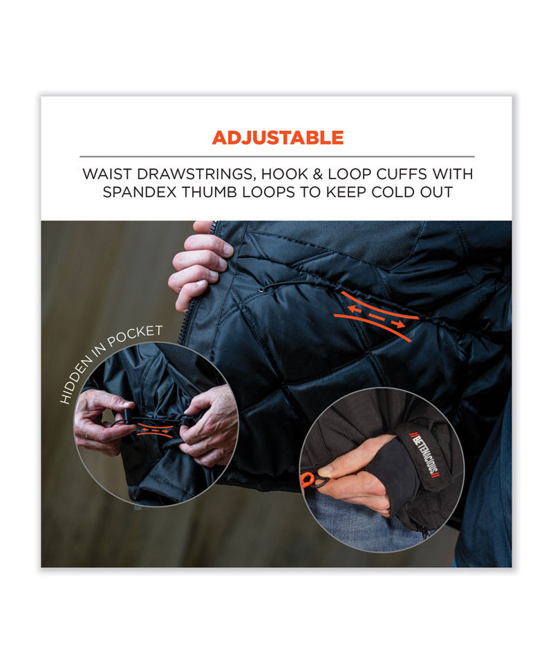 The N-Ferno 6466 Heavy-Duty Winter Work Jacket is built for warm and durable protection in extreme cold. The 500D polyester oxford with breathable water-repellent coating protects from the elements, while 3M Thinsulate insulation traps heat for enhanced warmth. 1600D reinforcements in heavy wear areas and YKK zippers mean this workwear jacket is built to last. This winter work jacket features an exterior back document pocket, two lower exterior front pockets, an exterior front cell phone pocket and an interior audio pocket for secure storage. A removable hood, adjustable drawcords and adjustable hook and loop cuffs make for an adjustable fit. 3M reflective accents keep workers safe and seen. Designed for warmth, functionality, durability and comfort, this is the ultimate thermal winter jacket for workers in any industry, from construction to mining.