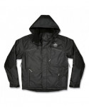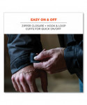 The N-Ferno 6467 Winter Work Jacket is built for warm and durable protection in cold environments. The 300D polyester oxford with breathable water-repellent coating protects from the elements, while thermal insulation and quilted sleeves keep workers comfortably warm. This work jacket features a removable hood that can easily be snapped on or off depending on weather conditions or personal preference. For a snug and custom fit that keeps cold air out, it features adjustable hook and loop cuffs, drawstring hood, drawstring waist and a long tail that won't ride up. The adjustable cuffs plus heavy-duty zippered closure also make for easy on and off with gloves. One exterior chest pocket and one interior pocket (both fit larger smartphones), plus two lower-front pockets for convenient storage. Reflective accents keep workers safe and seen. This winter work jacket is ideal for those who work in cold environments where hi-vis is not required.
