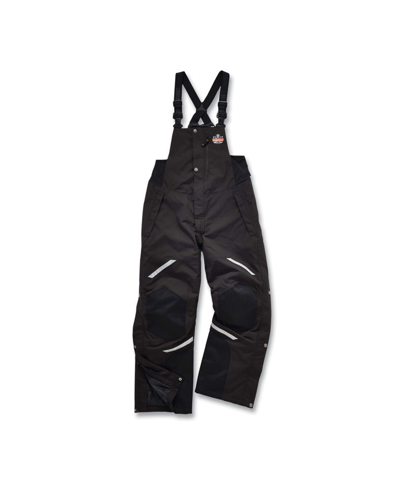 Heavy-duty insulated bib overalls are designed to be worn over work pants for warmth and durability in extremely cold environments. The 500D polyester oxford with breathable water-repellent coating protects from the elements, while 3M Thinsulate insulation traps heat for enhanced warmth. These black winter work bibs hide dirt and feature 1600D reinforcements to hold up through the toughest work conditions. For convenient storage, these work bibs have one chest pocket and two side pockets. Zippers on each leg make it easy to pull on and take off the insulated bib overalls without removing work boots. 4-way stretch sides enhance comfort where you need it, and adjustable elastic straps make for a custom fit. 3M reflective accents keep wearers safe and seen. These winter work bibs are a great