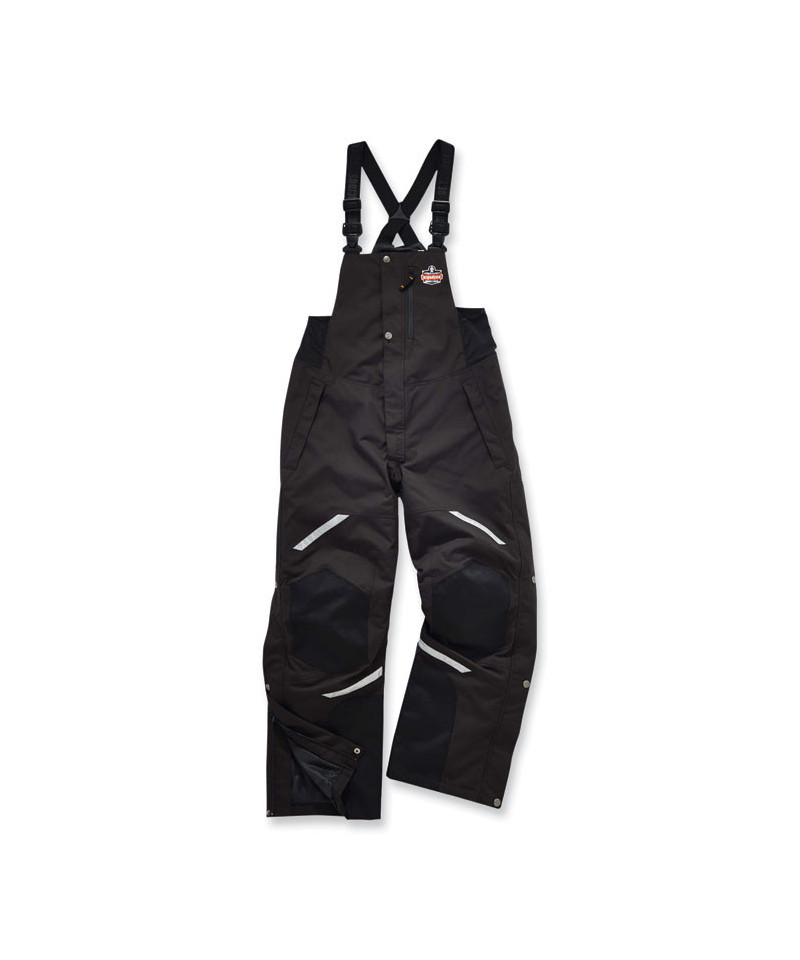The N-Ferno 6471 Heavy-Duty Insulated Bib Overalls are designed to be worn over work pants for warmth and durability in extremely cold environments. The 500D polyester oxford with breathable water-repellent coating protects from the elements, while 3M Thinsulate insulation traps heat for enhanced warmth. These black winter work bibs hide dirt and feature 1600D reinforcements to hold up through the toughest work conditions. For convenient storage, these work bibs have one chest pocket and two side pockets. Zippers on each leg make it easy to pull on and take off the insulated bib overalls without removing work boots. 4-way stretch sides enhance comfort where you need it, and adjustable elastic straps make for a custom fit. 3M reflective accents keep wearers safe and seen. These winter work bibs are a great choice for warmth while resisting heavy wear and tear in industries such as mining, construction and manufacturing.