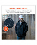 The N-Ferno 6468 Heavy-Duck Canvas Work Jacket is a rugged midweight jacket for warmth in cool conditions. The cotton duck canvas features a wind- and water-resistant DWR finish for long-lasting durability and dry all-day wear. The body and hood are lined with warm and comfortable sherpa, while the flexible gusseted sleeves feature 40 gm quilted insulation for warmth without compromised mobility. For a snug and custom fit that keeps cold air out, this canvas work jacket features rib knit cuffs, an elastic bungee waist, drawstring hood and a long tail that won't ride up. Built for the job, the hood is large enough to be pulled up over hard hats. A zippered closure with snap buttons makes for easy on and off. This sherpa-lined canvas jacket features six pockets for convenient storage.