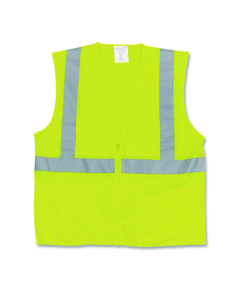 ANSI Class 2 Two-Pocket Zipper Mesh Safety Vest, X-Large, Hi-Viz Lime Yellow