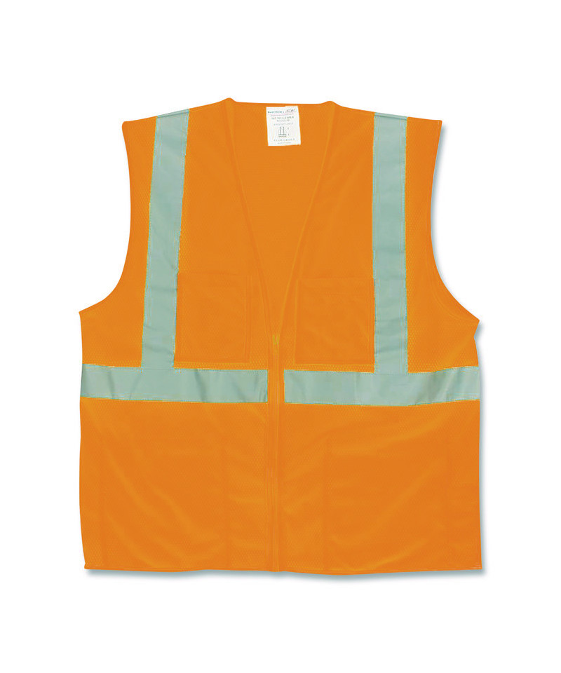 ANSI Class 2 Two-Pocket Zipper Mesh Safety Vest, Polyester Mesh, X-Large, Orange
