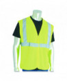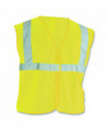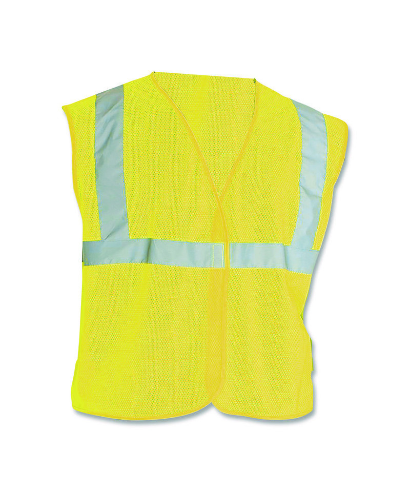 Class 2 apparel is necessary for workers exposed to traffic traveling over 25 mph and who work against complex backgrounds. Hook and loop enclosure for secure closure of vest. Features 2" silver reflective tape for visibility and matching trim.