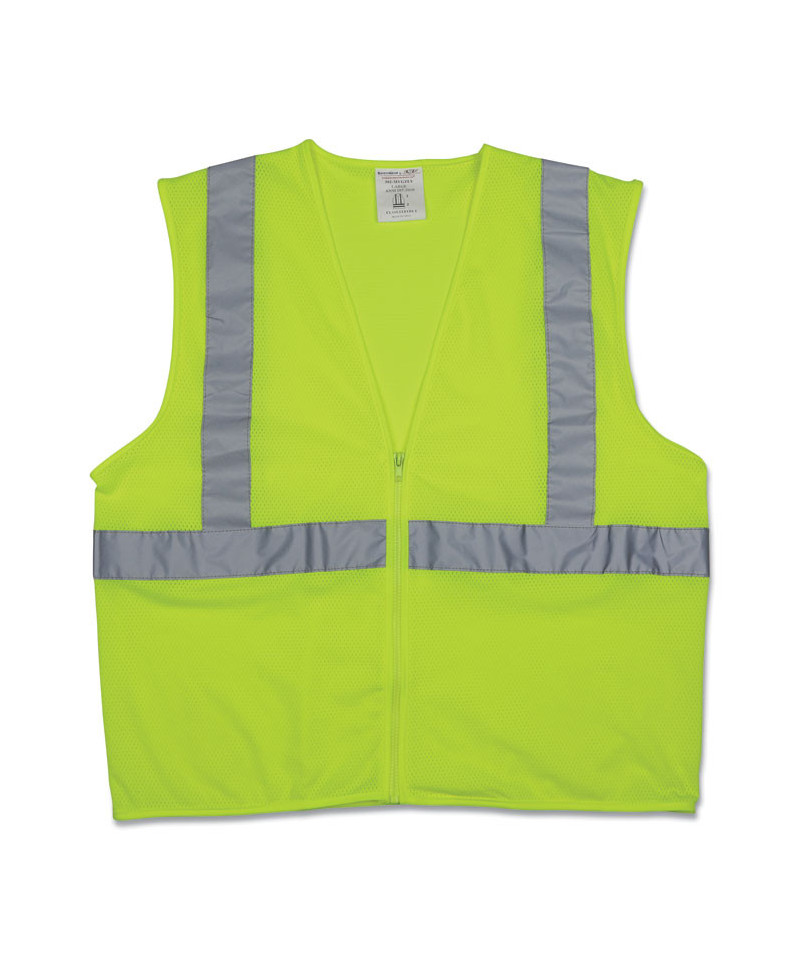 Protect yourself while working with this bright neon safety vest. With a 100 percent polyester mesh fabric design and zipper closure, this vest is lightweight and easy to wear over clothing. Features 2" reflective silver stripes and matching trim that make you easy to see both night and day, so it's ideal for a range of tasks where visibility is important.