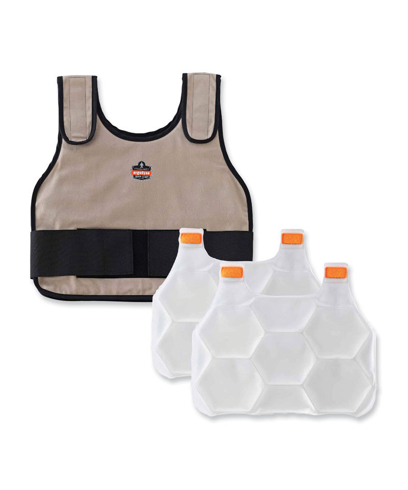 The Chill-Its 6230 Standard Phase Change Cooling Vest helps keep workers cooler, safer and more productive. The phase change cooling material maintains a 64°F (18°C) temperature for up to four hours when activated. The vest is made of a comfortable cotton blend fabric with adjustable hook-and-loop closures at the shoulders and waist to provide a customized comfortable fit. There are many ways to activate your cooling vest. Simply place the two removable packs in a cooler of ice water for 10 minutes; freezer for 15 minutes; refrigerator for 25 minutes; or near an air conditioner for one to two hours. Then place the recharged cooling packs in the vest pockets for hours of cooling.