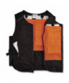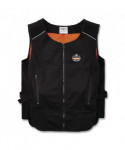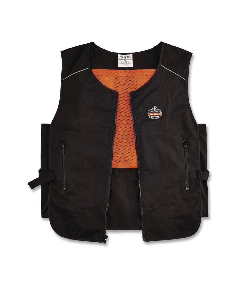 Designed to be thirty to sixty percent lighter weight than other cooling vests on the market, the Chill-Its Lightweight Phase Change Cooling Vest helps to keep workers cooler, safer and more productive. Phase change cooling material maintains a 64°F/18°C temperature for up to two hours when activated. Constructed of a polyester cotton blend fabric, the vest's adjustable hook-and-loop closures around the waist provide a customized fit for different body types. The heavy-duty front zipper makes for easy on/off, while the two front zippered pockets can be used to store small accessories. Simply place the four removable packs in a cooler of ice water for five minutes, freezer for eight minutes, refrigerator for 12 minutes, or near an air conditioner for one hour. The cooling pack should be washed by hand with a mild detergent and warm water. Do not machine wash or machine dry. The fabric vest is hand washable with mild soap.