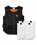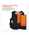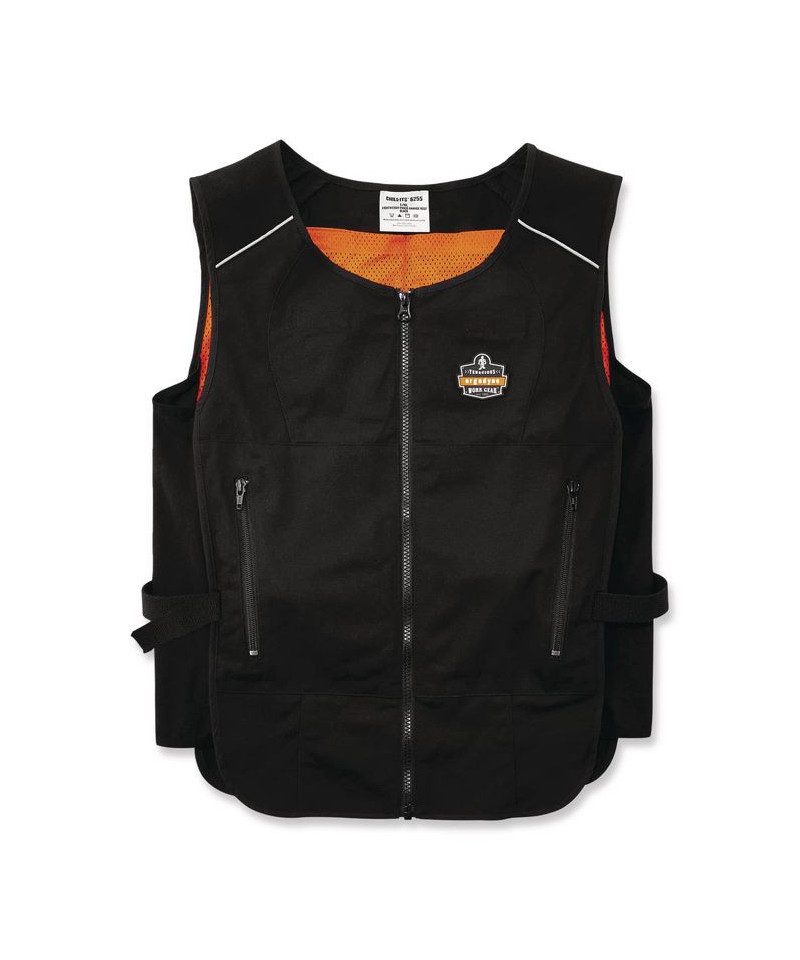 Designed to be thirty to sixty percent lighter weight than other cooling vests on the market, the Chill-Its Lightweight Phase Change Cooling Vest helps to keep workers cooler, safer and more productive. Phase change cooling material maintains a 64°F/18°C temperature for up to two hours when activated. Constructed of a polyester cotton blend fabric, the vest's adjustable hook-and-loop closures around the waist provide a customized fit for different body types. The heavy-duty front zipper makes for easy on/off, while the two front zippered pockets can be used to store small accessories. Simply place the four removable packs in a cooler of ice water for five minutes, freezer for eight minutes, refrigerator for 12 minutes, or near an air conditioner for one hour. The cooling pack should be washed by hand with a mild detergent and warm water. Do not machine wash or machine dry. The fabric vest is hand washable with mild soap.
