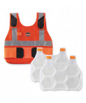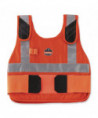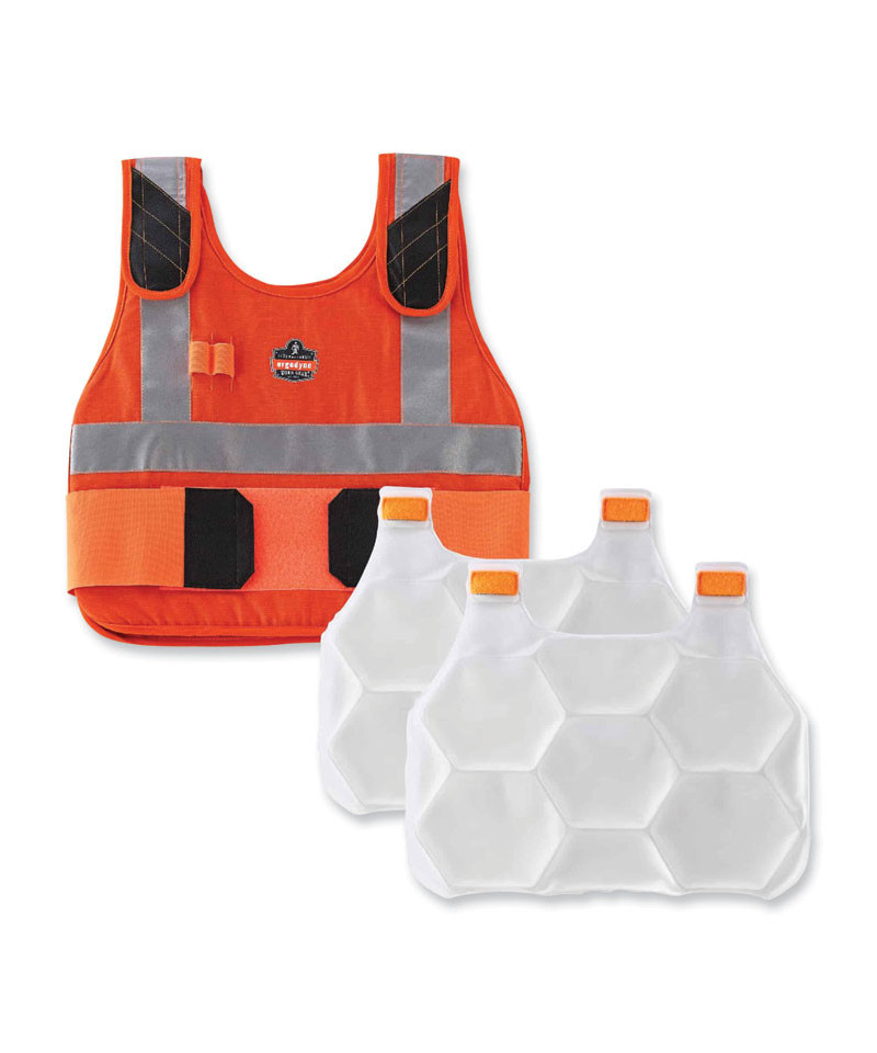 The Chill-Its 6215 Premium Phase Change Cooling Vest with Packs helps to keep workers cooler, safer and more productive, maintaining a 64°F (18°C) temperature for up to four hours when activated. The vest is made of a modacrylic cotton blend flame-resistant fabric, which meets ASTMF1506 requirements as well as being classified to NFPA (CAT1). The adjustable hook-and-loop closures at the shoulders and waist provide a customized and comfortable fit. There are many ways to activate your cooling vest. Simply place the two removable packs in a cooler of ice water for 10 minutes; freezer for 15 minutes; refrigerator for 25 minutes; or near an air conditioner for one to two hours. Then place the recharged cooling packs in the vest pockets for hours of cooling.