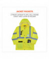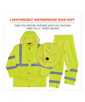 Lightweight hi-vis rain suit kit includes the 8366 Rain Jacket and 8916 Rain Pants for protection in wet conditions while maintaining high visibility compliance. The fully waterproof jacket and pants are constructed of rugged 150D polyester oxford with a PU coating and fully taped seams to keep workers dry. Compliant to ANSI/ISEA 107 Type R, Class 3 with reflective tape for enhanced low-light visibility. This lightweight reflective rain suit easily fits over workwear without sacrificing mobility, with an elastic waistband for comfort and snap cuffs on the pants for easy on/off over boots. Fully taped seams are bonded to keep water from sneaking in, while a vented cape-back on the jacket allows heat and moisture to escape for added breathability. An attached drawstring hood can be stowed a