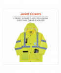 Lightweight hi-vis rain suit kit includes the 8366 Rain Jacket and 8916 Rain Pants for protection in wet conditions while maintaining high visibility compliance. The fully waterproof jacket and pants are constructed of rugged 150D polyester oxford with a PU coating and fully taped seams to keep workers dry. Compliant to ANSI/ISEA 107 Type R, Class 3 with reflective tape for enhanced low-light visibility. This lightweight reflective rain suit easily fits over workwear without sacrificing mobility, with an elastic waistband for comfort and snap cuffs on the pants for easy on/off over boots. Fully taped seams are bonded to keep water from sneaking in, while a vented cape-back on the jacket allows heat and moisture to escape for added breathability. An attached drawstring hood can be stowed a