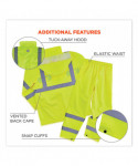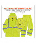 Lightweight hi-vis rain suit kit includes the 8366 Rain Jacket and 8916 Rain Pants for protection in wet conditions while maintaining high visibility compliance. The fully waterproof jacket and pants are constructed of rugged 150D polyester oxford with a PU coating and fully taped seams to keep workers dry. Compliant to ANSI/ISEA 107 Type R, Class 3 with reflective tape for enhanced low-light visibility. This lightweight reflective rain suit easily fits over workwear without sacrificing mobility, with an elastic waistband for comfort and snap cuffs on the pants for easy on/off over boots. Fully taped seams are bonded to keep water from sneaking in, while a vented cape-back on the jacket allows heat and moisture to escape for added breathability. An attached drawstring hood can be stowed a