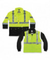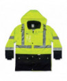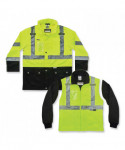 Class 3/2 Thermal Jacket Kit includes 8386 Class 3 Outer Shell Jacket and 8287 Convertible Thermal Jacket to create the ultimate 4-in-1 hi-visibility jacket system. Weatherproof 300D oxford polyester outer shell with breathable PU coating that resists water and wind, for dry comfort all day. Inner jacket with 100 g 3M Thinsulate lining. Inner jacket zips out and sleeves zip off to create Class 2 thermal vest. Features two ANSI-compliant reflective stripes for nighttime visibility. Black panels hide dirt and wear. Other features include inset hood with drawstring and stoppers, two external front pockets with snap flaps, external zipper chest pocket, cellphone chest pocket, clear ID badge holder and dual mic tabs for clipping radios.