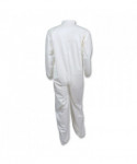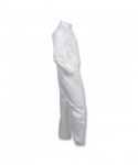These liquid and particle protection coveralls are made of microporous film laminate with zipper front, flap over zipper and elastic in the back for improved protection.