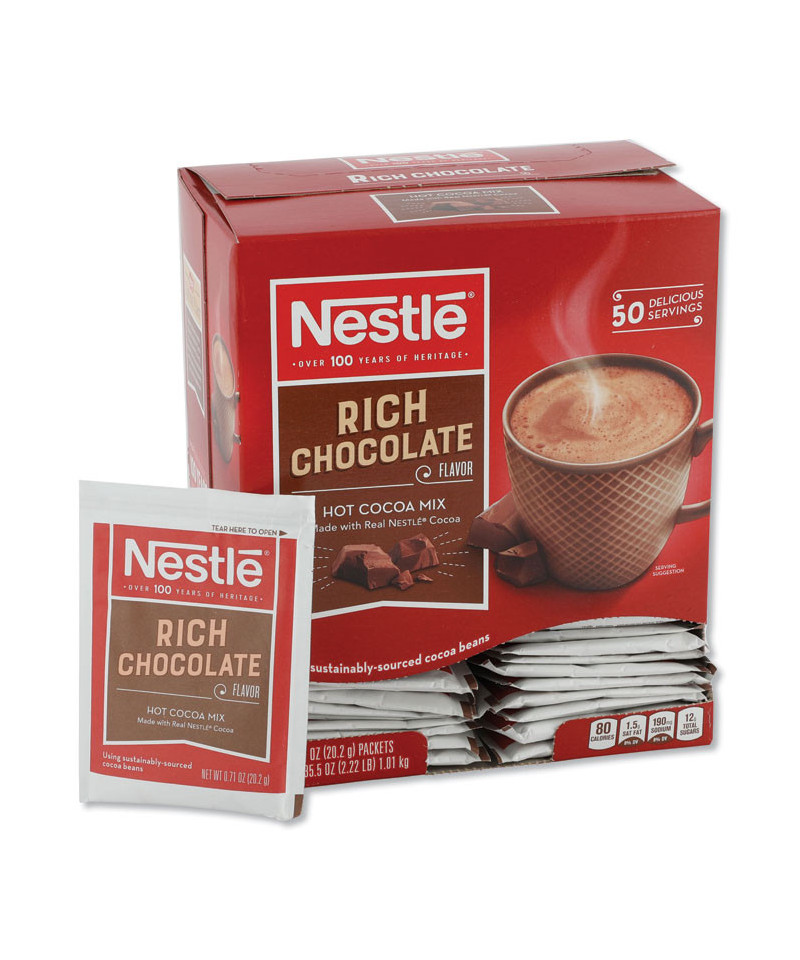 Rich hot chocolate mix to stay warm on those cold days. Contains 35% less sugar than other major brands. Enjoy the sweet flavor of Nestle Hot Cocoa. Each packet makes one perfect cup of cocoa.