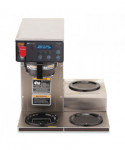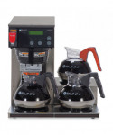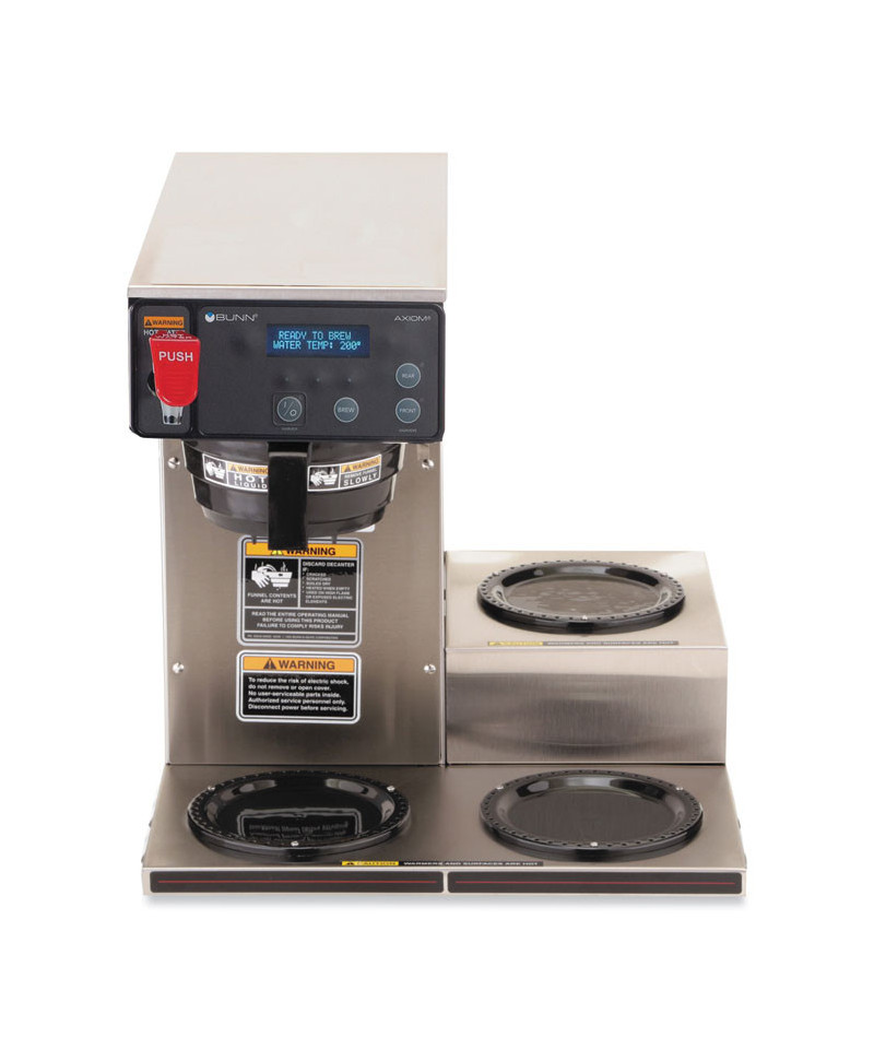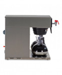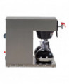 Plumbed, medium volume brewing solution with Digital Brewer Control™ for precise extraction control. Coffee extraction controlled with programmable pre-infusion, pulse brew and digital temperature precision. Hot water faucet, electronic diagnostics and built-in tank drain make service easier. Ensure coffee quality with programming for brew level, cold brew lockout and tank temperature, set easily from the front of the machine. Large 200 oz. tank provides back-to-back brewing capacity. Brews up to 4.2 gal of coffee per hour. Three lower warmers with automatic shut-off. Adjusts automatically to varying water pressures. Energy-saver mode reduces tank temperature during idle periods. Features a hot water faucet for soups and other hot drinks. Integrated SplashGard funnel prevents burns. Decanters sold separately.
