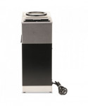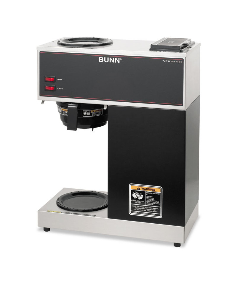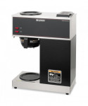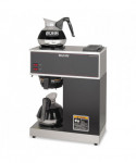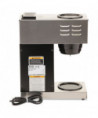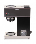 Simple switch-control office brewer that does not require plumbing or special wiring. Just pour cold water in the top and coffee brews immediately. Features two separately controlled warmers. Low profile design fits on most countertops. Stainless steel hood and base with black accents cleans easily with a damp cloth. SplashGard® funnel deflects hot liquids away from hands. Brewing capacity: 3.8 gallons per hour. Server(s) sold separately.