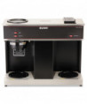 Simple switch-control office brewer that does not require plumbing or special wiring. Just pour cold water in the top and coffee brews immediately. Features three separately controlled warmers. Low profile design fits on most countertops. Stainless steel hood and base with black accents cleans easily with a damp cloth. SplashGard® funnel deflects hot liquids away from hands. Brewing capacity: 3.8 gallons per hour. Server(s) sold separately.