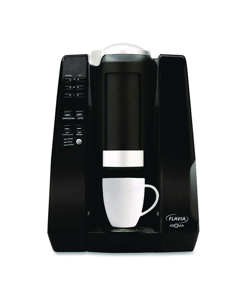 Enjoy your favorite coffees, teas, cappuccinos, lattes, and hot chocolate with the FLAVIA® AROMA. Brewing is simple! Choose from a variety of drinks, and in under a minute, you'll craft your custom beverage with just a push of a button. Perfect for any small office or supplementary spaces such as conference rooms, meeting spaces and more, the Flavia AROMA brewer offers a full range of cafe-style drinks in a small and compact countertop design for any office space. Brew coffees, teas, cappuccinos, lattes, and hot chocolate in three sizes, all ready in less than a minute. With no cleanup or mess and an easy-to-fill water tank, you can enjoy all your favorite custom beverages with just a push of a button. Automatic shut-off.