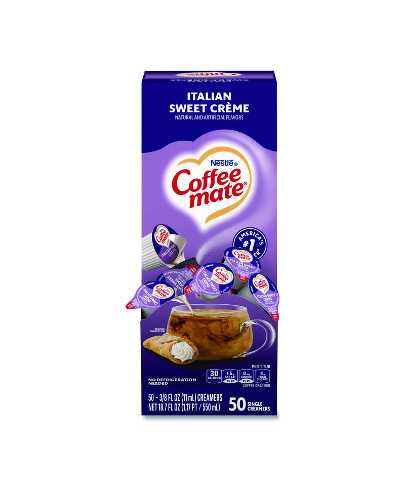 Stir up the perfect cup with Coffee mate, America's #1 creamer brand. It is shelf stable with no refrigeration needed. Coffee mate liquid creamer singles retain their delicious flavor at room temperature for up to nine months unopened. Find your perfect match with NESCAFE Coffee and Coffee mate liquid creamer singles. All Coffee mate foodservice single serve creamers are cholesterol-free, gluten free and kosher dairy. See the full Coffee mate ingredients statement for Coffee mate creamer ingredients. Coffee mate has your coffee creamer needs covered. Delight your employees, customers and guests by offering Coffee mate liquid creamer in your workplace, breakroom or kitchen.