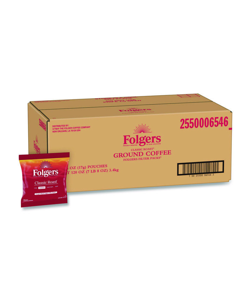 Our most popular medium roast, Folgers Classic Roast is carefully blended with the world's richest and most aromatic beans delivering rich flavor and balanced character cup after cup. Proprietary filter packs put the filter plus premeasured coffee grounds all in one convenient product! No more measuring or spilling coffee grounds. The rich flavor of Folgers is more than just coffee - it's tradition. Folgers satisfies guests with the taste they love in a variety of convenient formats.