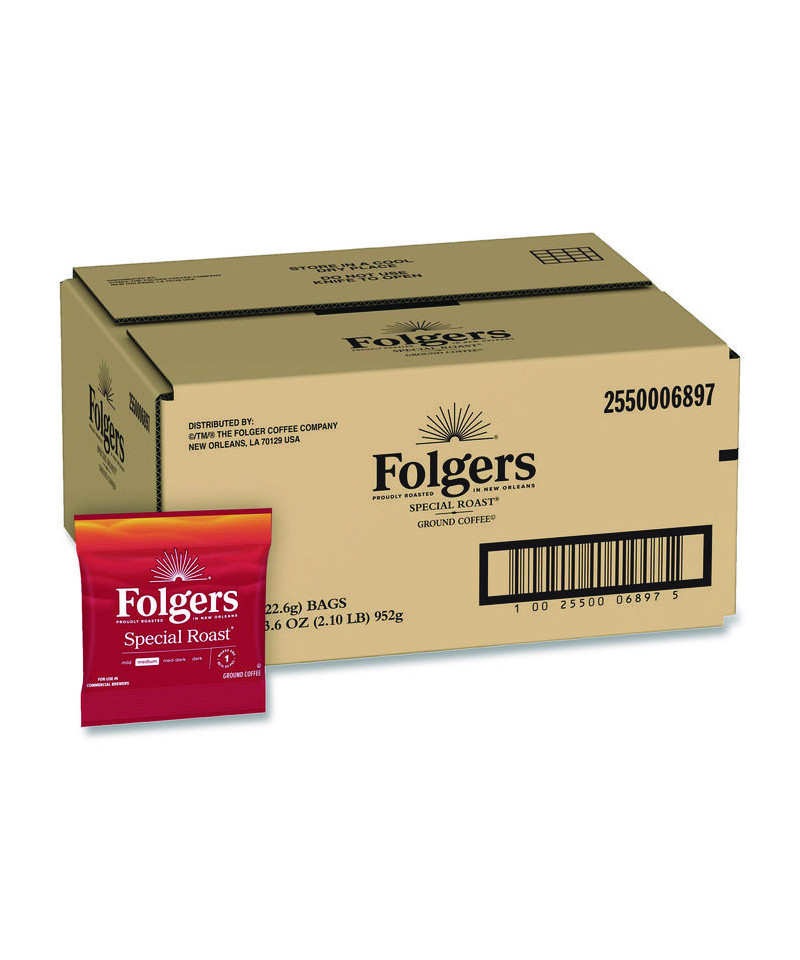 Folgers Special Roast Coffee is a well-crafted, medium-roasted blend that has an exceptionally balanced taste. Convenient fraction packs are a low-touch way to deliver consistent flavor cup after cup. Each pack is premeasured and ready for your commercial coffee brewer, limiting potential points of contact with grounds. The rich flavor of Folgers is more than just coffee – it's tradition.