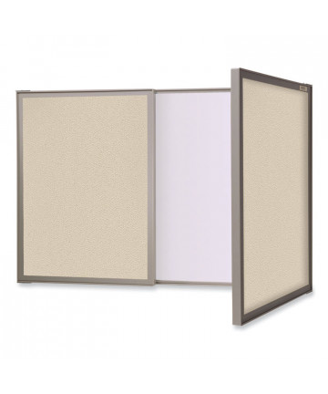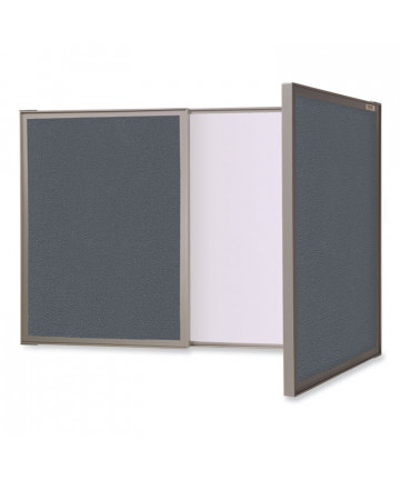 Ghent's VisuALL PC Conference Cabinet offers privacy and versatility, making managing your workstation simpler. The compact cabinet sits two inches from the wall and when closed, is only 3' wide. The compact cabinet opens to reveal a 6' dry erase surface, offering the perfect place to collect ideas or brainstorm. Take advantage of a full-sized whiteboard, while using less wall space in a small room or office. The versatile VisuALL PC cabinet comes with mounting hardware for easy attachment to divider panels, making it the perfect solution for divider panel workstations that whiteboards could not be mounted to otherwise. You no longer need to relocate to find a whiteboard, helping you increase productivity and be more efficient with your time. When closed, the doors of the cabinet provide a fabric tack surface, used to hang bulletins, notes, or reminders. More affordable than a traditional wooden cabinet, the conference cabinet is a great investment for someone who would like increased privacy in a conference room, office, small meeting area or at a desk. Take notes without worrying about having to erase it immediately, or that others may see private information. Simply shut the doors to conceal the whiteboard and come back later to review the information. Each cabinet is shipped to you in Ghent's worry-free packaging, designed specifically for shipping conference cabinets.
