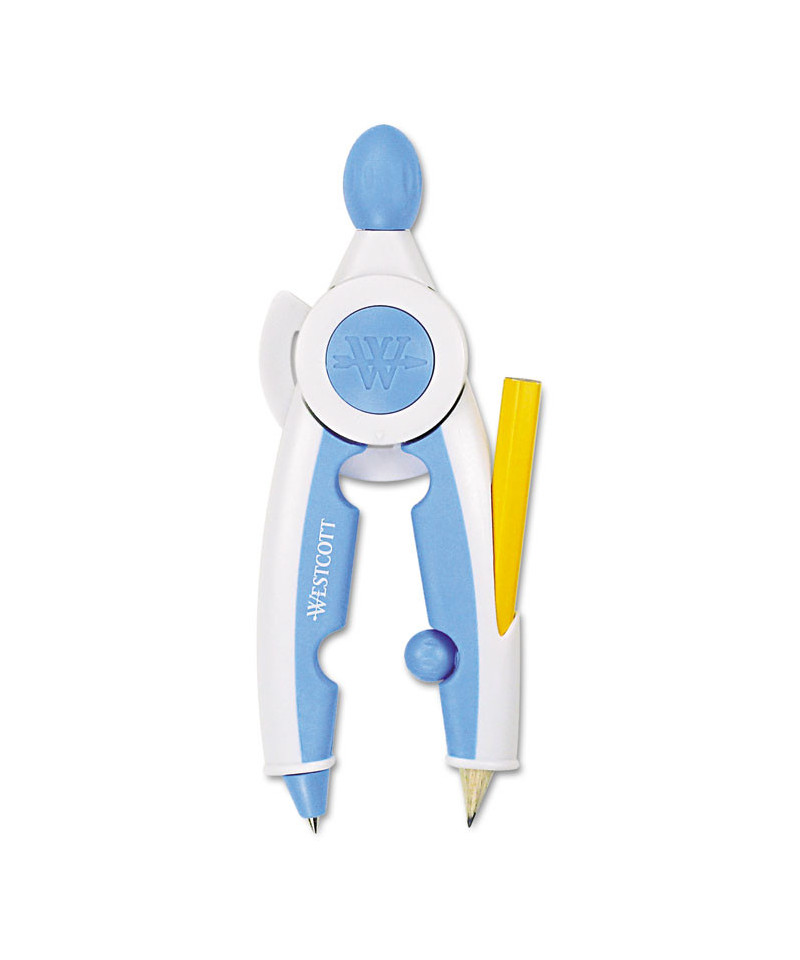 Features a circular, soft grip top for easy use and greater accuracy. Compass contains an antimicrobial agent to help inhibit the growth of bacterial stains and odors. Fully retractable point for safety. Assorted color combinations are: Blue/White, Green/White, Pink/White or Gray.