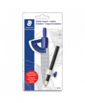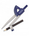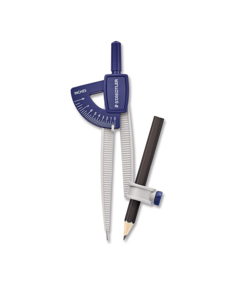 Stay safe while learning with the obtuse-angled safety needle on this student compass. The easy-to-hold top supports a firm grip for precise drawings. A pre-sharpened pencil comes with this Staedtler student compass for immediate use, and a universal adapter lets you add a new one when the old one is finished.