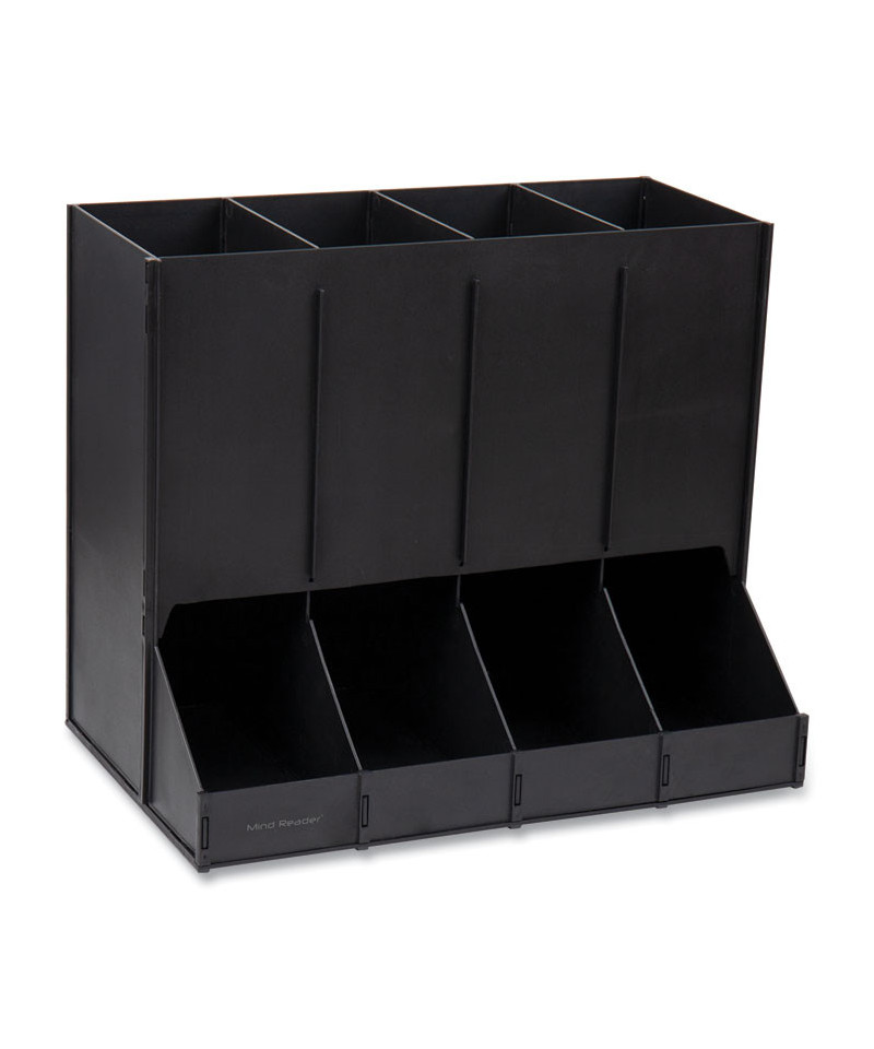 Abundant compact coffee pod storage. Just right for your breakroom, reception area, or hospitality suite, this single serve coffee pod dispenser corrals everyone's favorite flavors and minimizes messes. Just fill up this coffee pod dispenser and reward yourself with a hot cup of java—no assembly required. This coffee pod organizer stores up to 30 single-serve pods in each of its four compartments for an impressive total of 120 pods. You can arrange them in multiple ways to suit various tastes and preferences. Spills happen, especially when days get hectic. There is no reason to fret about time-consuming cleanup as this coffee station organizer cleans up quickly with the help of a damp cloth. This single-serve coffee pod organizer is made from heavy-duty plastic which stands up to everyday use. Neat, simple, and minimal, the coffee pod drawer elevates your breakroom coffee drinking experience and makes busy breaks a breeze.