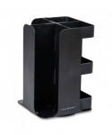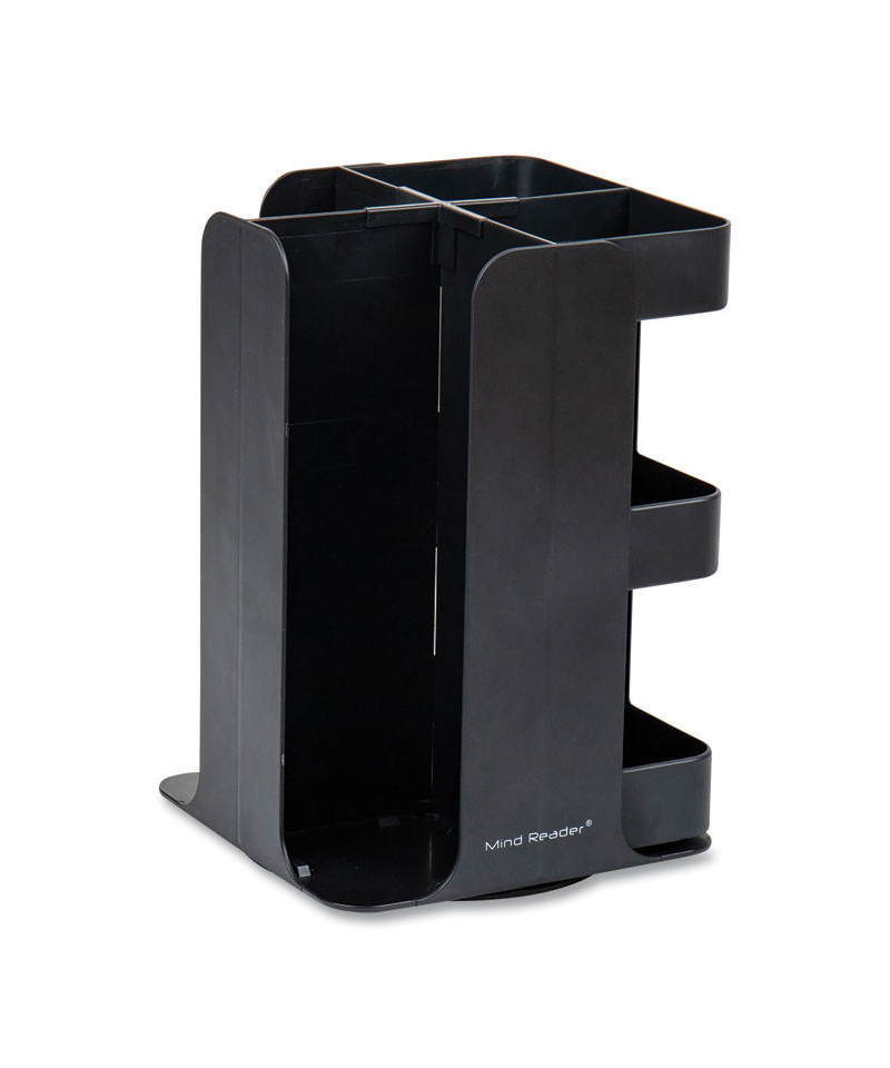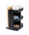 Organization is essential in any kitchen, especially in the workplace or hotel. Keep your disposable cups, lids and condiments neat and tidy on any countertop with this 8-compartment carousel. Each cup compartment can hold 25 to 30 cups depending on the size. It fits 10 oz, 12 oz and 16 oz disposable cups. There are six compartments for lids, sweeteners and creamers. This caddy is designed for high-traffic areas where people need to access cups, lids and condiments. Keep your hotel patrons happy by placing it near your coffee station. It's also a great gift for students in college who need endless cups for their late nights of studying. Plan ahead for your next party and buy this for the coffee station so everyone can help themselves to a hot beverage and keep the party going. Ideal for indoor or outdoor use, the plastic cup, lid and condiment holder is both neutral and modern. If an accidental spill happens or dust accumulates, clean this eight-compartment rotating carousel with mild soap and a paper towel or soft cloth.
