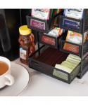 Clean up the clutter in your pantry with the space-saving tea bag organizer that can serve many purposes in your kitchen. The 5-drawer tea bag organizer works for many spaces and rooms beyond the kitchen. Expand pantry space in an RV or camper, or use it in a dorm with a small kitchen. Versatile for many uses, use it as a storage solution for drink packets, tea and coffee condiments, vitamins, coffee pods, and many other products. Perfect for office breakrooms and teachers' lounges, it's also a welcome addition to your desk or work-from-home setup since you can store everything you need for a cup of tea within the handy organizer. Save space with plenty of storage and avoid clutter on your counter or table. This organizer sits discreetly on any surface, but you can also keep it inside a pantry or closet for easy access. Each drawer is removable can hold up to 30 tea bags comfortably. Plus there is a wide bottom drawer that can hold your sweeteners, creamers, honey packets and stirrers. It's easy-to-clean removable drawers only require a wipe-down with a damp cloth to stay dust- and stain-free. You don't need to assemble the tea bag drawers when you receive them because the organizer is shipped ready to hold your tea bags right out of the box. Give the gift of tea storage to a hot beverage-loving friend and add a box of treasured tea bags alongside the present for a perfect holiday gift or just as a gift of appreciation. Makes for a thoughtful gift for a teacher, coworker, or college student.