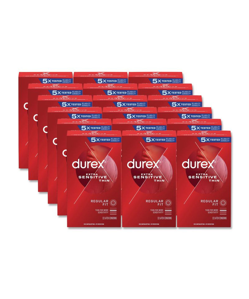 Durex® Extra Sensitive™ Condoms are ultra-thin latex condoms that give you the intimate feeling of skin-on-skin contact. These condoms are thinner than our standard condoms while providing the protection you need. Each condom for men is 100% electronically tested for strength, flexibility, reliability and features a pleasant scent. For maximum benefit, carefully follow the condom instructions on the inner side of this package. Helps provide protection against pregnancy, HIV/AIDS and other sexually transmitted infections (STIs).
