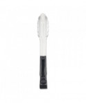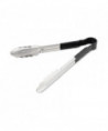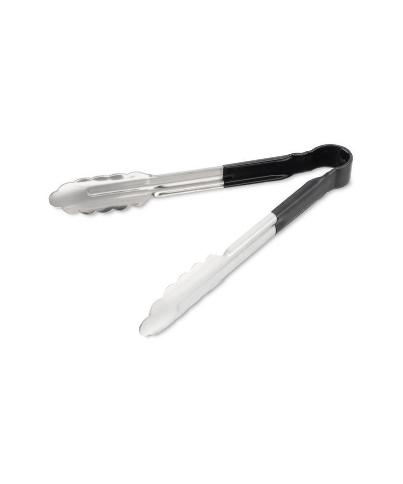 Dura-Kool Tongs can withstand temperatures up to 95°F (90° C). They have single-piece heavy-duty stainless construction that eliminates food traps for more sanitary use. It also has a spring action hinge that won't break and provides a convenient hook for storage.